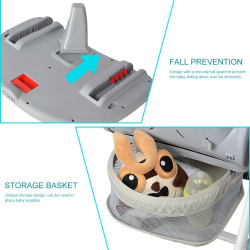 Baby High Chair, Foldable Dining Chair with Storage Basket, Adjustable Seat Height, Food Tray and Footrest, 3 Reclining Backrest