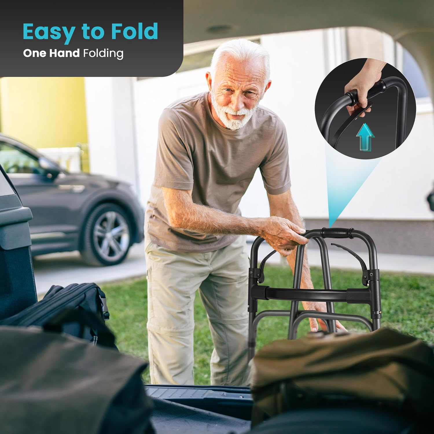 Stay safe, mobile, and confident with this sturdy yet portable folding walker — perfect for seniors and adults who need reliable support.