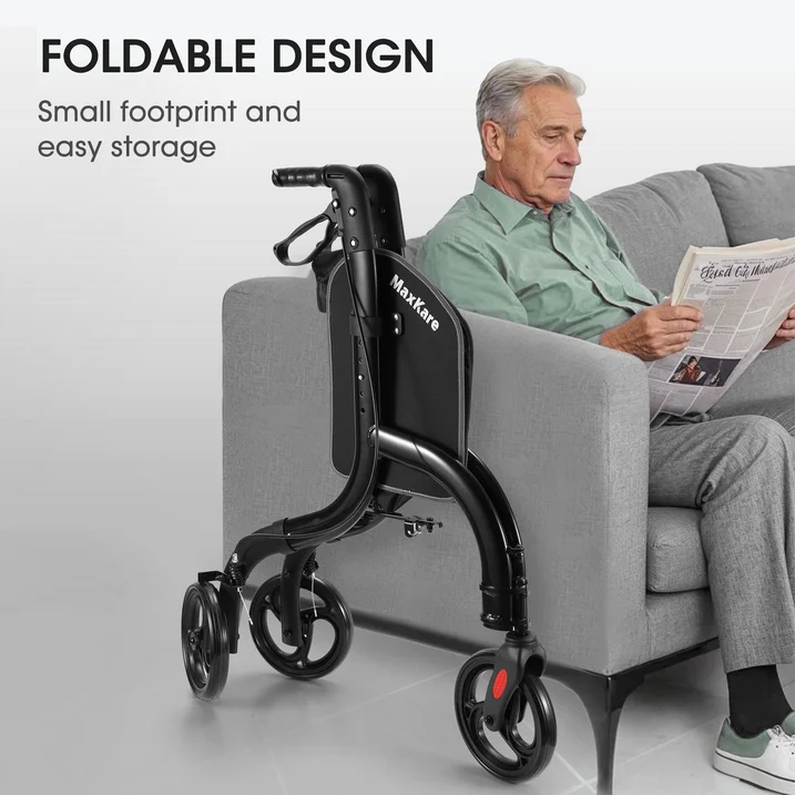 MaxKare 3-Wheel Foldable Rollator Walker