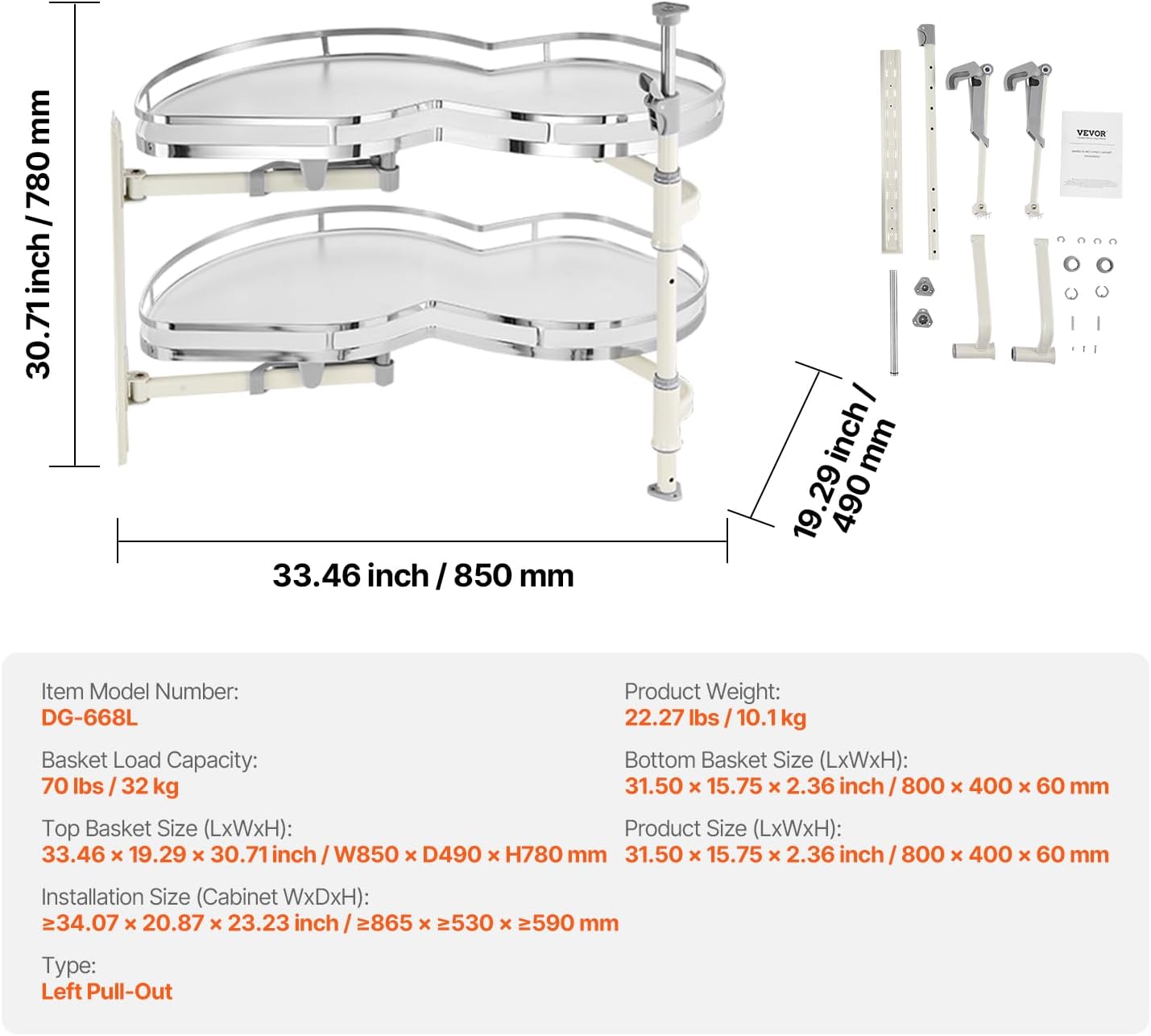 • Maximize Blind Corner Space: Transforms hard-to-reach cabinet corners into usable storage. Ideal for right-opening doors (left rotation).