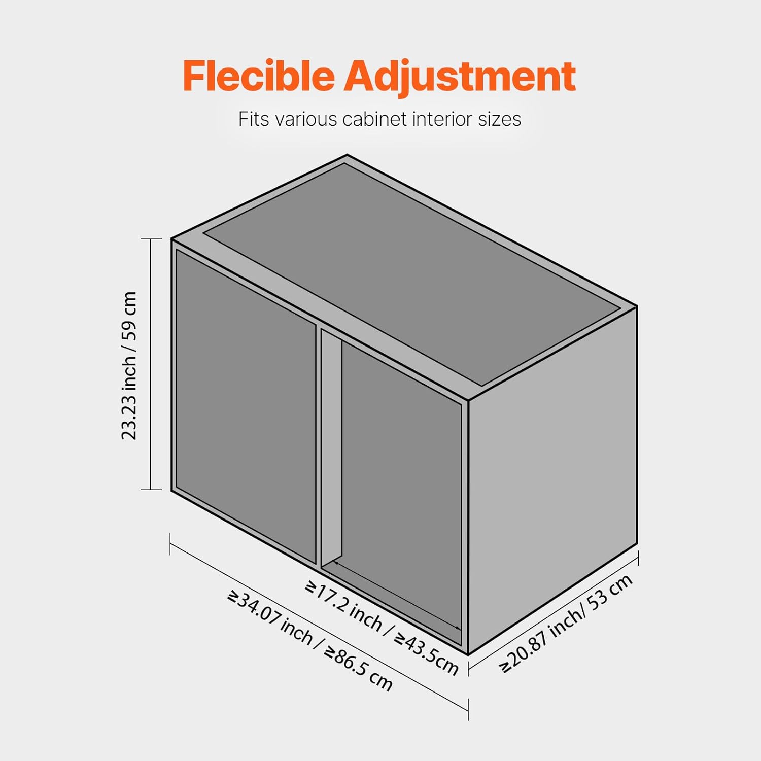 • Adjustable Fit: Height-adjustable rods and supports fit most kitchen layouts (minimum cabinet size 34.07" x 20.87" x 23.23").